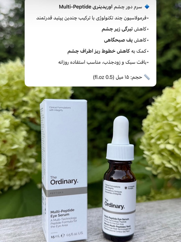 سرم دور چشم کافئین 5٪ اوردینری | کاهش پف و تیرگی سرم دور چشم کافئین 5٪ اوردینری (The Ordinary Caffeine Solution 5% + EGCG) یک محصول تخصصی و مؤثر برای کاهش پف، تیرگی و خستگی دور چشم است. این سرم با ترکیب قدرتمند کافئین 5 درصد و EGCG استخراجشده از چای سبز به بهبود گردش خون موضعی کمک کرده و ظاهر کدر و تیره اطراف چشم را بهمرور روشنتر میکند. فرمولاسیون سبک و زودجذب این سرم بدون ایجاد چربی یا سنگینی بوده و برای استفاده روزانه مناسب است. سرم دور چشم اوردینری گزینهای ایدهآل برای افرادی است که دچار پف صبحگاهی، تیرگی ناشی از خستگی یا استرس هستند و به دنبال محصولی مؤثر و بدون حساسیت میباشند. مزایای سرم دور چشم کافئین اوردینری: • کمک به کاهش پف زیر چشم • کاهش تیرگی دور چشم • حاوی کافئین 5٪ و EGCG • بافت سبک با جذب سریع • مناسب انواع پوست • فاقد چربی، پارابن و الکل نحوه مصرف: صبح و شب مقدار کمی از سرم را با نوک انگشت و ضربات ملایم روی پوست تمیز دور چشم استفاده کنید. 📦 محصول اورجینال | مناسب مصرف روزانه | انتخابی حرفهای برای مراقبت دور چشم